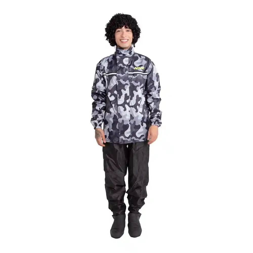 Traje Impermeable para motociclista en poliéster con respaldo de PVC. Con todas las costuras impermeabilizadas y Refuerzo textil en axilas y tiro y entrepierna del pantalón.