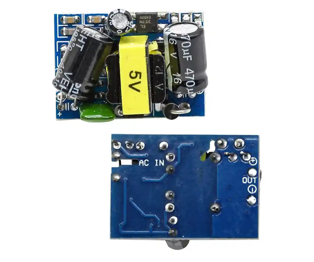 Dimensiones: 3cm x 2cm x 1.8cm Voltaje de entrada AC 85V - 265V 50 / 60HZ Voltaje de salida DC5V (± 0.2V) Corriente de salida 700mA Potencia de salida 3,5 W Temperatura de funcionamiento: de -20 ° C a +60 ° C Humedad relativa: 40-90% RH sin enfriamiento Corriente de sobretensión de entrada: 20A Rango de voltaje de salida: 4,80 ~ 5,2 V Ondulación de salida: 60 mV Voltaje de salida: +5 V Corriente mínima: 0A Corriente máxima: 700 mA Potencia de salida: 4,5 W Eficiencia de salida: 80% Interruptor de sobreimpulso: 10% Tiempo de subida de salida: 100 mS Instalación A, se puede montar en los pines de los terminales de entrada y salida soldados directamente a la PCB B, pegado fijo Funciones de protección: Salida sobre protección de potencia Protección contra cortocircuitos Protección de temperatura Protección actual LA COMPRA INCLUYE: 1 x FUENTE REGULADOR AC DC 5V 700mA
