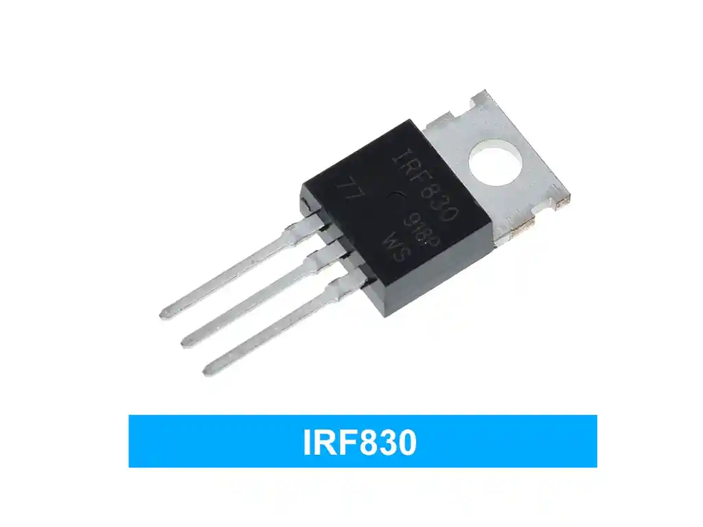 MOSFET . Es un transistor de tecnología MOS-FET (Metal–Oxide–Semiconductor – Field Effect Transistor) y de alta potencia que posee destacadas características que lo hacen ideal para aplicaciones de conmutación y en la modulación por ancho de pulso (PWM). Tipo de FET Canal N Tecnología MOSFET (óxido de metal) Voltaje de drenaje a fuente (Vdss) 500 V Corriente: drenaje continuo (Id) a 25 ° C 4.5A (Tc) Rds activado (máx.) @ Id, Vgs 1,5 ohmios a 2,5 A, 10 V Vgs (th) (Max) @ Id 4 V a 250 µA Carga de puerta (Qg) (Max) @ Vgs 32 nC a 10 V Vgs (máx.) ± 20 V Capacitancia de entrada (Ciss) (Max) @ Vds 600 pF a 25 V LA COMPRA INCLUYE: 1X TRANSISTOR MOSFET IRF830 500V 4.5A TO-220