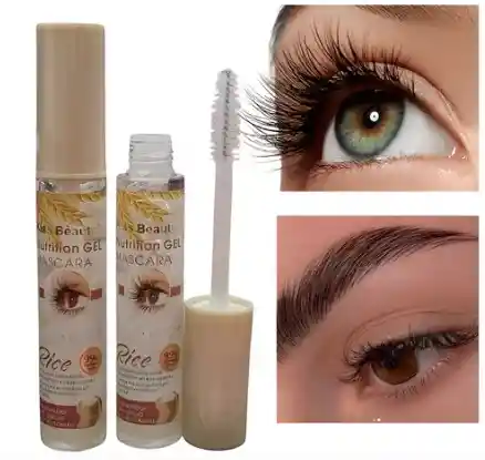 Máscara de gel nutritiva Kiss Beauty Nutrition GE Mascara con extracto de arroz. Es un gel transparente diseñado para nutrir, fortalecer e hidratar las pestañas y cejas. Ayuda a que las pestañas se vean más peinadas y rizadas. Contiene un 99% de arroz, conocido por sus propiedades hidratantes. Es resistente al agua, al sudor y no se corre.