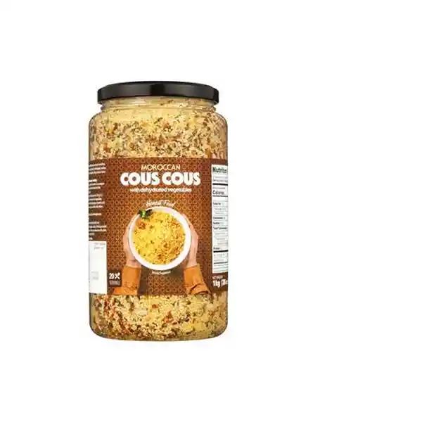 Disfruta de un Viaje Sin Dejar tu Cocina Descubre Nuevos Sabores Con Este Cuscús Marroquí y Muéstrales el Chef Que Hay en ti. ¡Es Fácil de Cocinar y Estará Listo en 5 Minutos! Solo Vierte Agua Hirviendo y Agrega un Poco de Aceite y Sal. El Cuscús Marroquí no Solo es Bueno Sino También es Simple y Delicioso: Solo Verduras Deshidratadas y Cuscús. No Tiene Sal Añadida y es Vegano.