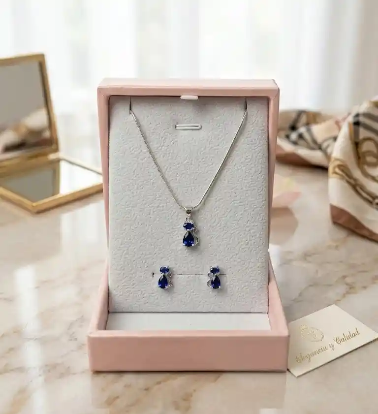 Trio Plata Ley 925 - Gato Azul Garantia Original + Estuche De Lujo ✨🐱💙 Un conjunto elegante y encantador ela...Ver más
