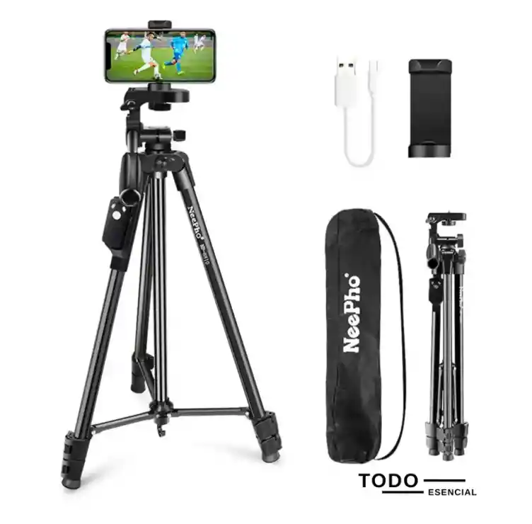 Trípode Profesional Ajustable con Obturador Bluetooth | Estable, Versátil y Fácil de Usar 📸 Captura tus mejores momentos con este trípode multifuncional diseñado para brindar estabilidad, comodidad y compatibilidad universal. 🔧 Abrazadera ajustable: asegura firmemente smartphones, cámaras y otros dispositivos para un uso estable y seguro. 🧲 Gancho incorporado: cuelga accesorios o contrapesos para mejorar la estabilidad en exteriores. ⚙️ Bloqueos de piernas de liberación rápida: ajusta la altura y el ángulo en segundos, sin complicaciones. 🦶 Pies de goma antideslizantes: máxima estabilidad en cualquier superficie, desde interiores lisos hasta terrenos irregulares. 📲 Obturador Bluetooth incluido: controla tu cámara a distancia, ideal para selfies, videos y fotos en grupo. 🔩 Tornillo estándar de 1/4″: compatible con la mayoría de cámaras digitales, soportes y equipos de grabación. 📏 Altura regulable de 45cm a 130cm: ajusta según la escena, desde tomas bajas hasta a la altura de los ojos. Perfecto para fotografía, videollamadas, grabaciones, transmisiones en vivo y más. ¡Llévalo contigo a todas partes y crea contenido como un profesional!