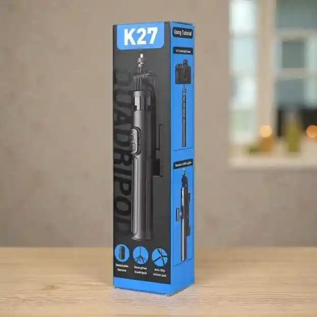Captura fotos y videos estables desde cualquier ángulo con el Trípode Selfie Stick K27, un accesorio versátil diseñado para creadores de contenido, videollamadas, transmisiones en vivo y fotos grupales. Su diseño 2 en 1 funciona como selfie stick y trípode, permitiéndote mayor comodidad y estabilidad. Incluye control remoto Bluetooth desmontable, ideal para tomar fotos a distancia sin tocar el celular. Cuenta con patas antideslizantes que brindan mayor firmeza en diferentes superficies y un sistema plegable y ligero, perfecto para llevar a cualquier lugar. Características destacadas: Modelo: K27 Altura 130cm Función 2 en 1: selfie stick + trípode Control remoto Bluetooth desmontable Altura ajustable Diseño compacto y portátil Patas con base antideslizante Ideal para fotos, videos, streaming y videollamadas