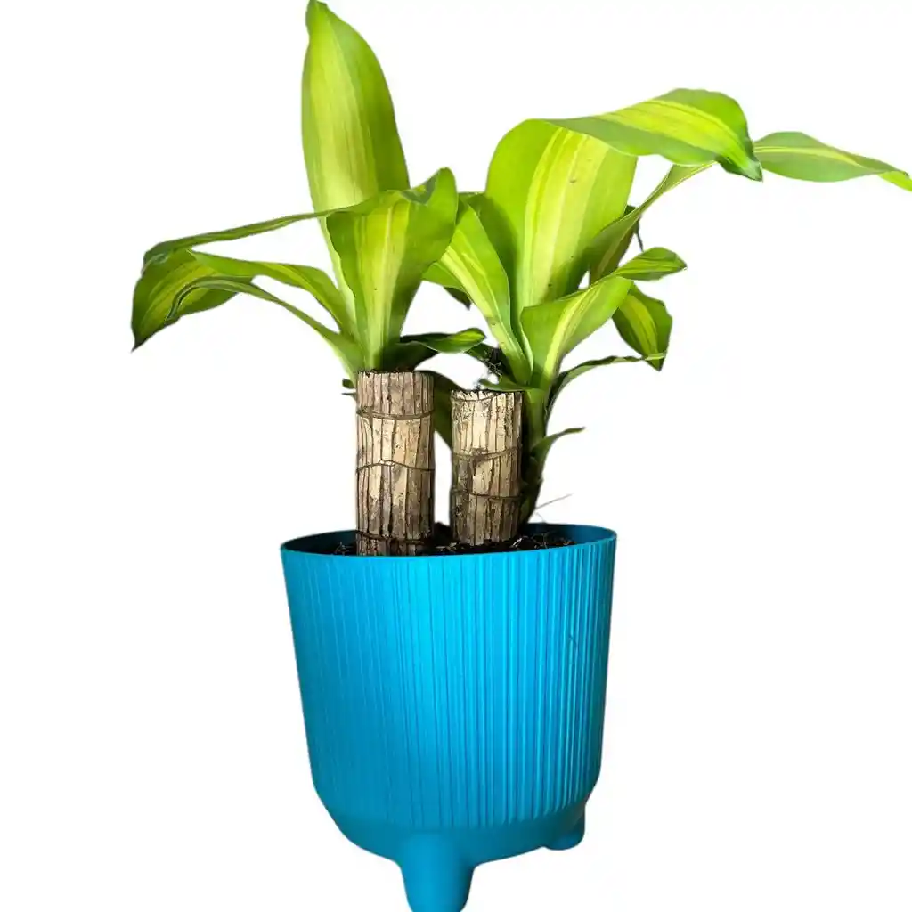 Llena tu espacio de vida y buena energía con esta hermosa Dracaena fragrans, conocida como Tronco de Brasil 🍃. Viene sembrada en una matera plástica de diseño moderno color azul, con patas elevadas que realzan su elegancia y frescura 🌱✨. ☀️ Ideal para interiores con luz indirecta. 💧 Requiere riego moderado (1 o 2 veces por semana). 💨 Purifica el aire y es perfecta para armonizar ambientes según el feng shui. 📄 Incluye ficha técnica con sus cuidados esenciales. 🏡 Perfecta para salas, oficinas, recibidores o como regalo especial. 🎁 ¡Un detalle natural, moderno y lleno de buena vibra para cualquier ocasión!