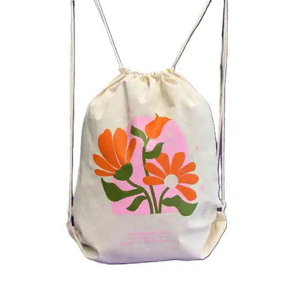 Tula tipo saco de estilo casual y ecológico. Su estructura ligera y práctica la convierte en una opción ideal para el uso diario, salidas, gimnasio o actividades al aire libre. Su diseño artístico aporta un toque moderno y natural a cualquier look.