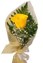 Unidad de rosa amarilla Una rosa amarilla que simboliza amistad y felicidad, perfecta para alegrar el día de alguien especial. Nota: La flor puede ser sustituida dependiendo de la disponibilidad de color y del producto. "Mensaje Personalizado" máximo de 30 caracteres (Dejar el mensaje en el chat, los comentarios no se previsualizan para la tienda, por lo que si se dejan allí no podrá ser incluido).