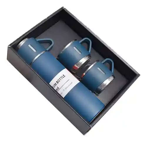 Vacuum Flask Set Termo 500ml Con 3 Tazas Acero Inoxidable Color Azul