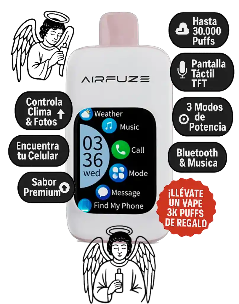 💨 Puffs: Hasta 30,000 caladas llenas de sabor frutal intenso. ⚙️ Funciones inteligentes: 🎙️ Micrófono para llamadas ✅ Pantalla TFT táctil ✅ Bluetooth & Música para vapear con ritmo ✅ Control de Clima & Fotos ✅ 3 Modos de potencia para regular intensidad 🍓🫐 Sabor: Explosión dulce de frutilla, arándano y otras bayas mixtas, para un perfil jugoso, vibrante y equilibrado. Cada puff es suave pero cargado de sabor, perfecto para los que aman las frutas rojas. 👌 Perfecto para: Quienes buscan un vapeo dulce, frutal y jugoso, con toda la comodidad y tecnología de un vape inteligente para disfrutar en cualquier momento.