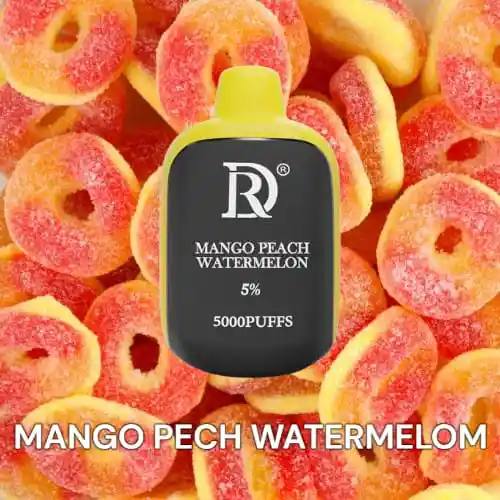 vapeador desechable Death Row de 5000 Puffs con sabor Mango Peach Watermelom Dimensiones: 78 mm de alto, 42 mm de ancho y 22 mm de grosor. Capacidad de e-líquido: 10.5 ml. Concentración de nicotina: 5% (50 mg/ml). Batería: Recargable de 600 mAh con puerto de carga USB tipo C. Resistencia: 1.0 ohm. VC Potencia de la bobina: 11 W. Número de caladas: Aproximadamente 5000. Este dispositivo ofrece una experiencia de vapeo prolongada y satisfactoria, combinando un diseño compacto con características avanzadas para los entusiastas del vapeo.