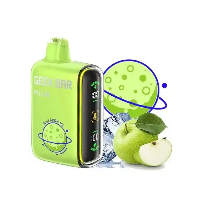 Geek Bar Pulse 15.000 Puffs, Sabor Manzana Verde Mentolada. PROHIBIDA LA VENTA A MENORES DE EDAD. ADVERTENCIA: ESTE PRODUCTO CONTIENE NICOTINA, LA NICOTINA ES UNA SUSTANCIA QUIMICA ADICTIVA Y NOCIVA PARA LA SALUD. Los líquidos para vapeo contienen: propilenglicol USP, glicerina USP, sabor artificial y nicotina. Este producto puede contener nicotina, una sustancia altamente adictiva que puede generar dependencia, posibles afectaciones arteriales, cardiacas, pulmonares y otras aun no identificadas. No se recomienda su uso a mujeres en embarazo, puede generar lesiones al feto. Mantener alejado de niños y mascotas. No ingerir, puede generar irritación y/o intoxicación. Por favor antes de consumir consulte a su médico posibles afectaciones o sensibilidad a alguno de sus componentes. Los componentes de este producto pueden aumentar la sensación de ansiedad En caso de notar alguna reacción adversa por favor suspenda su uso de manera inmediata. Siga las instrucciones en el envase. No alterar sus componentes. Adquiera sus productos en sitios de confianza No use productos piratas, alterados, o en los cuales no pueda comprobar su buena procedencia, Verifique la reputación del fabricante y distribuidor antes de adquirir cualquier producto Si no es usuario fumador o vapeador no se recomienda su uso bajo ninguna circunstancia Al usar este producto usted es consciente que este producto puede generar afectaciones a su salud, incluyendo aquellas que a la fecha de la compra no se han identificado y que pueden aparecer a largo plazo.