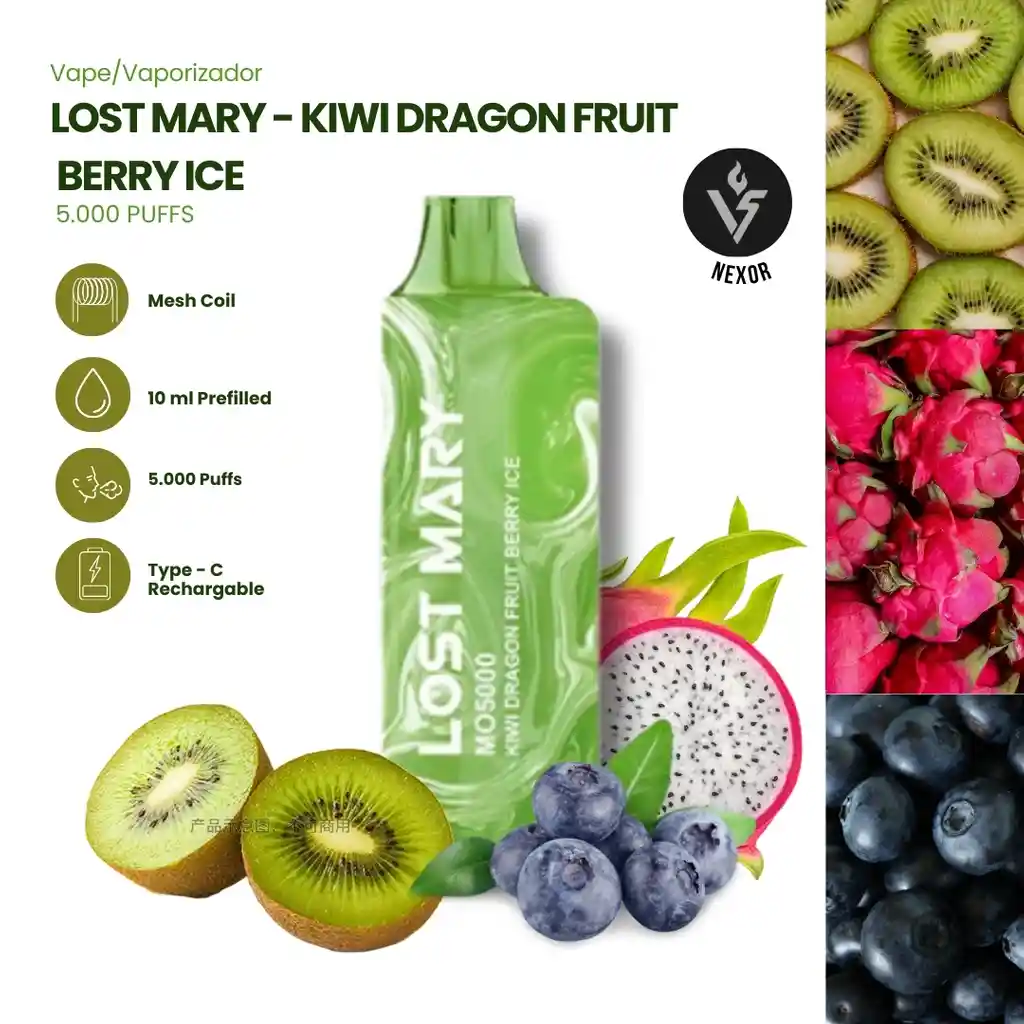 Disfruta una explosión tropical con el Lost Mary 5K Puffs Kiwi Dragon Fruit Berry Ice, una mezcla vibrante donde el kiwi aporta un toque ligeramente ácido, la pitahaya (dragon fruit) añade dulzura exótica y el berry ice cierra con una sensación fresca y mentolada que intensifica cada calada. Un equilibrio perfecto entre frutas tropicales y frutos rojos con un final frío que refresca desde la primera inhalación. ✨ Hasta 5000 puffs ✨ Sabor intenso y equilibrado ✨ Sensación ice refrescante ✨ Diseño compacto y fácil de llevar Ideal para quienes buscan un vape frutal, dulce y con un toque helado que no empalaga.