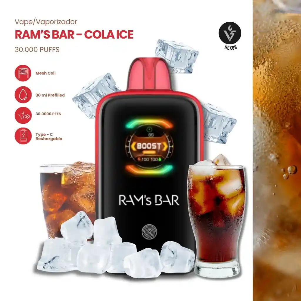 Un sabor clásico que te lleva directo a una gaseosa bien fría. Cola Ice mezcla ese perfil dulce y ligeramente acaramelado de la cola, con un toque burbujeante que recuerda a una soda recién abierta. Desde la primera calada sientes esa dulzura suave y familiar, seguida por un efecto ice que enfría la garganta y le da un acabado refrescante y adictivo Características: • 30 ml de e-liquid prellenado • 850 mAh recargable • Carga rápida tipo C • Mesh coil (resistencia de malla) • Flujo de aire ajustable 👉 Calada más suave o más fuerte • Modo normal / modo boost • Hasta 30.000 puffs en modo normal • Modo Boost: ~15.000 puffs 👉 Puedes elegir entre duración o potencia • Pantalla LED 👉 Muestra batería y nivel de líquido • Activación automática (sin botones) 👉 Solo inhalas y listo
