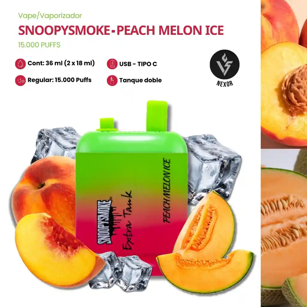 Disfruta una combinación irresistible con SnoopySmoke Peach Melon Ice, donde la dulzura jugosa del durazno se mezcla perfectamente con la suavidad tropical del melón, creando un sabor equilibrado y delicioso. El toque ice aporta una sensación fresca y mentolada que realza cada calada sin opacar la fruta. Una experiencia frutal, dulce y refrescante ideal para quienes buscan un vape suave pero lleno de sabor. ✨ Sabor durazno + melón perfectamente balanceado ✨ Toque ice refrescante ✨ Caladas suaves y consistentes ✨ Diseño práctico y fácil de llevar Perfecto para quienes aman los sabores frutales con un final frío que deja sensación limpia y agradable en cada inhalación 🍑🍈❄️