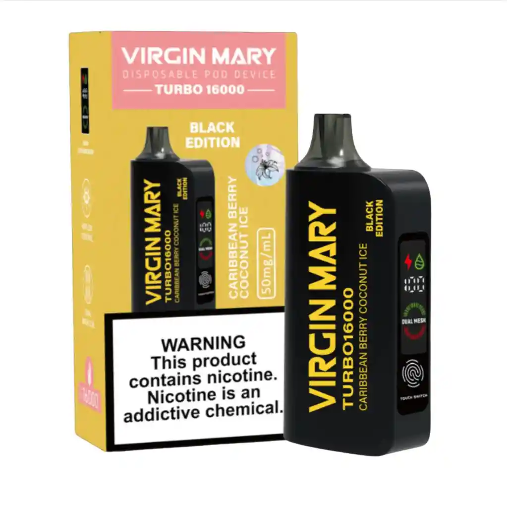 Vape Virgin Mary 16.000 Puffs Recargable Disfruta de una experiencia intensa y duradera con este dispositivo desechable de alta capacidad. Recarga su batería para aprovechar al máximo sus 16.000 puffs llenos de sabor. ¡Fácil de usar, sin recargas de esencia!