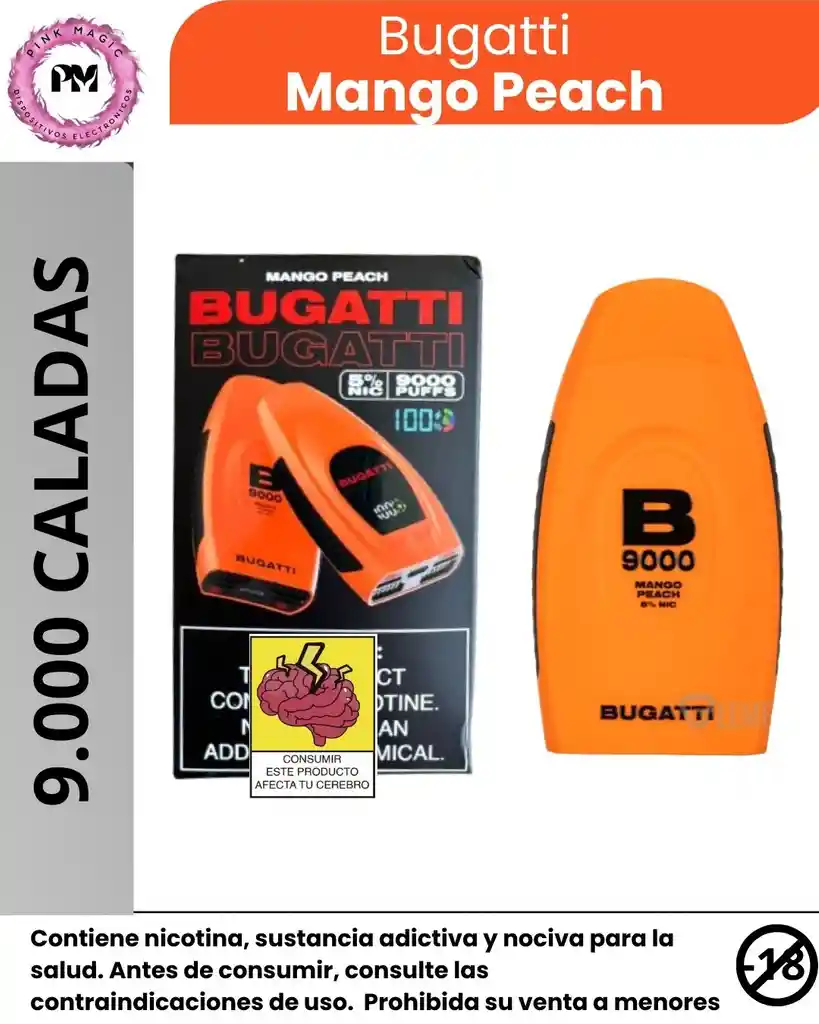 Bugatti Vape 9K – Diseño premium y alto rendimiento 🚗💨 El Bugatti Vape 9K es un vape desechable diseñado para quienes buscan estilo, potencia y duración en un solo dispositivo. Con hasta 9.000 caladas, ofrece un rendimiento confiable y una experiencia de vapeo suave y consistente. Su diseño elegante y moderno refleja la esencia premium de la marca Bugatti, ideal para quienes valoran la estética sin sacrificar calidad. Los sabores están formulados para mantenerse intensos desde la primera hasta la última calada. ⭐ Características destacadas: Hasta 9.000 puffs por dispositivo. Sabores intensos y duraderos. Diseño premium, moderno y compacto. Fácil de usar: listo para usar, sin recargas ni configuraciones. Ideal para el uso diario.