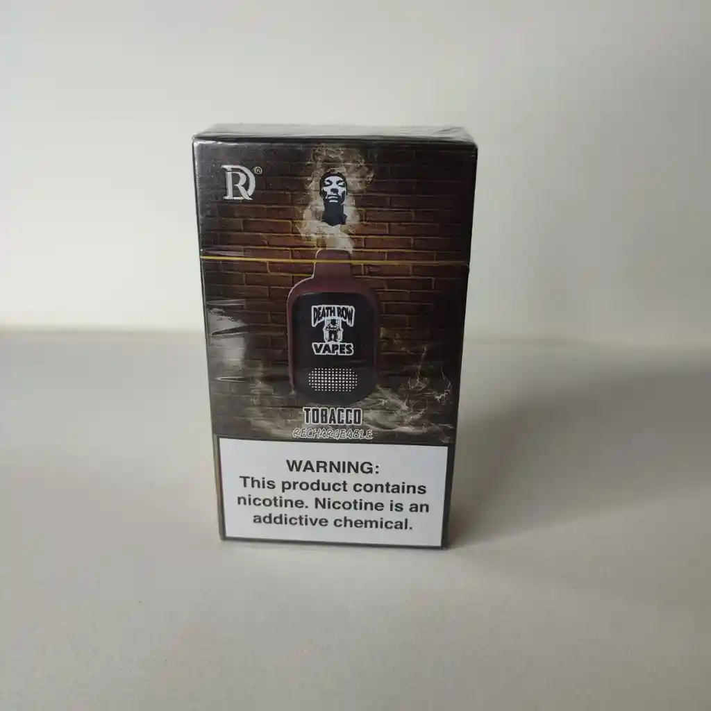 Características principales: Hasta 5000 caladas 10.5 ml de líquido electrónico precargado Sales de nicotina 5% Batería de 500 mAh recargable Puerto de carga Tipo-C Diseño compacto y fácil de transportar Contenido del paquete: 1 × Death Row Vapes 10.5ML 5000 Puffs Vaporizador desechable recargable El tobacco busca emular el gusto del tabaco tradicional, ofreciendo notas secas, ahumadas, tostadas o amaderadas.