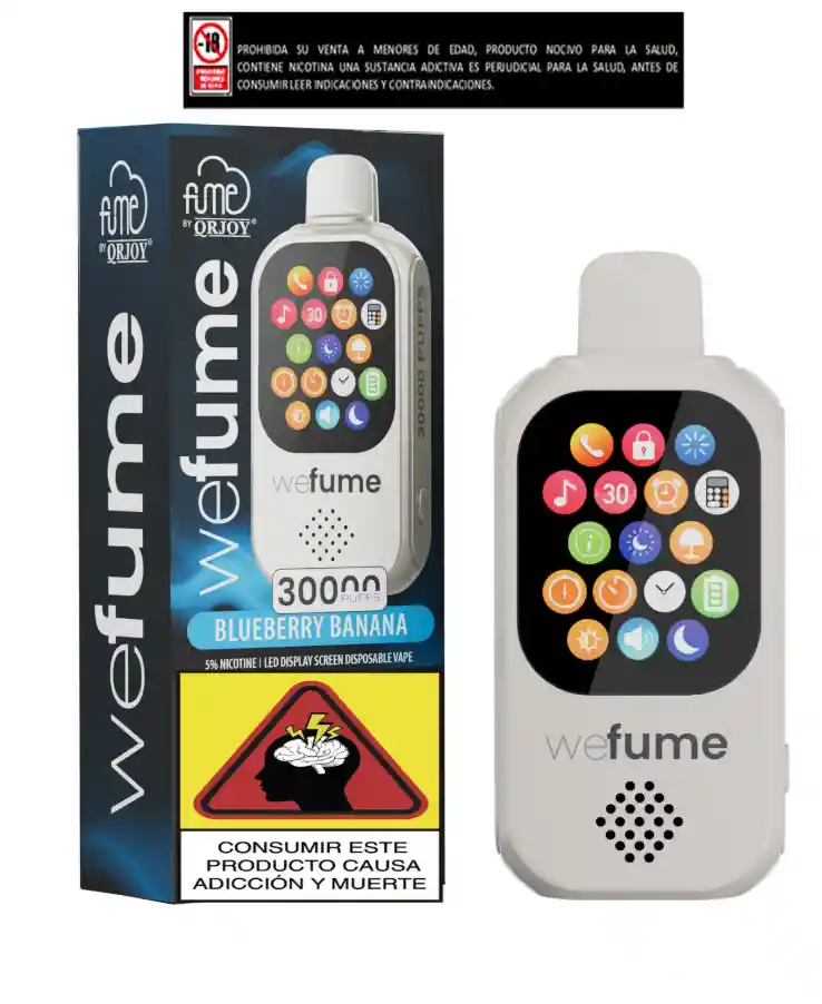 "¡Bienvenido al futuro del vapeo! Con el nuevo we fume de 30,000 vapeadas, tu experiencia va más allá del sabor. Equipado con reproductor de música, calculadora, despertador, ¡y hasta la capacidad de contestar llamadas! Es mucho más que un vapeador: es tu compañero todo-en-uno. ¿Estás listo para revolucionar la manera en que disfrutas cada calada? we fume, mucho más que vapor." Este producto contiene nicotina de 5mg, es una sustancia adictiva, perjudicial para la salud, prohibida su venta a menores de edad, antes de consumir leer indicaciones y contraindicaciones.