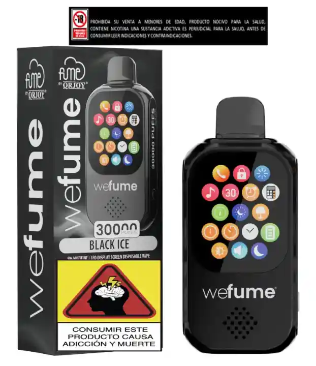 "¡Bienvenido al futuro del vapeo! Con el nuevo we fume de 30,000 vapeadas, tu experiencia va más allá del sabor. Equipado con reproductor de música, calculadora, despertador, ¡y hasta la capacidad de contestar llamadas! Es mucho más que un vapeador: es tu compañero todo-en-uno. ¿Estás listo para revolucionar la manera en que disfrutas cada calada? we fume, mucho más que vapor." Este producto contiene nicotina de 5mg, es una sustancia adictiva, perjudicial para la salud, prohibida su venta a menores de edad, antes de consumir leer indicaciones y contraindicaciones.