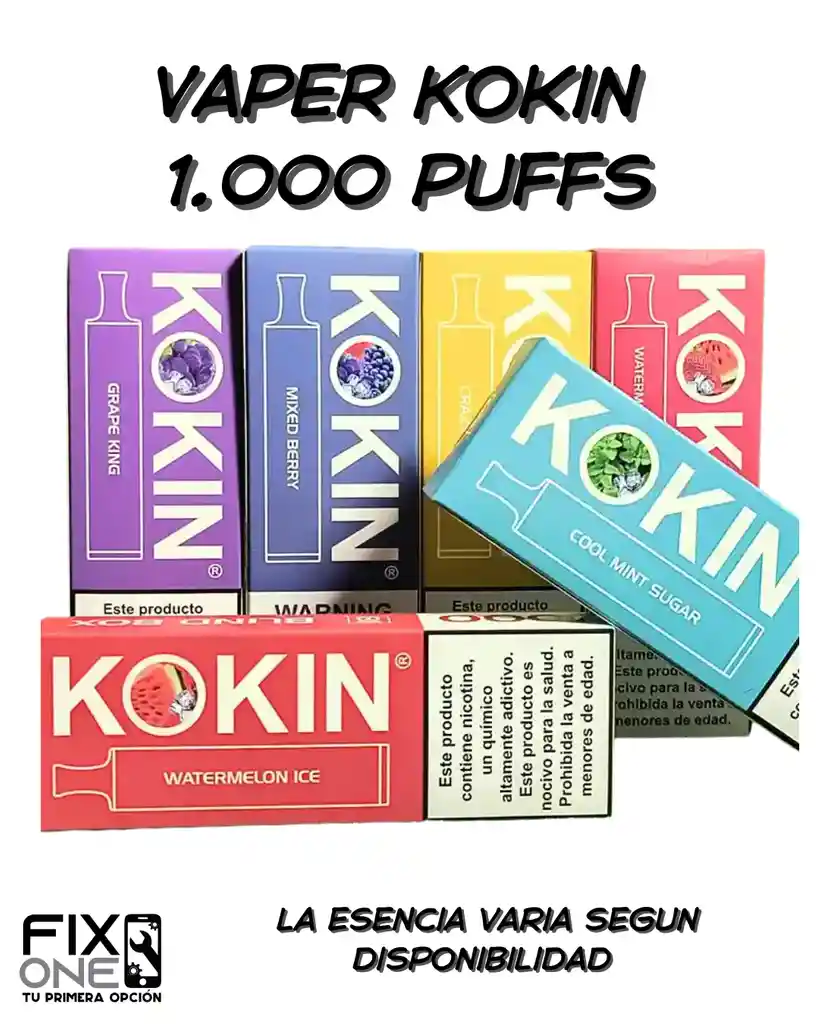 El Vaper 1000 Puff Kokin es un sistema de vape desechable precargado con 2 ml de líquido de vapeo y tiene una batería incorporada de 350 mAh. Está disponible en una variedad de sabores, que incluyen: 〰️Banana Ice (Fresa Menta) 〰️Mango Ice (Mango Menta) 〰️Strawberry Milk (Leche Fresa) 〰️Watermelon (Sandía) 〰️Cool Mint ✳️LA ESENCIA VARIA SEGUN DISPONIBILIDAD