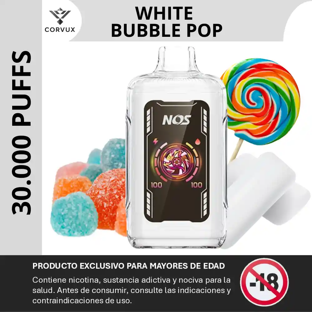 Vaper Vaporizador 30000 Puffs Vape Kylinbar Nos - White Bubble Pop PROHIBIDA LA VENTA A MENORES DE EDAD. PRODUCTO EXCLUSIVO PARA MAYORES DE EDAD, CONTIENE NICOTINA, SUSTANCIA ADICTIVA Y NOCIVA PARA LA SALUD. ANTES DE CONSUMIR, CONSULTE LAS INDICACIONES Y CONTRAINDICACIONES DE USO. El Kylinbar NOS 30 000 Puffs - White Bubble Pop, está orientado a un perfil dulce-golosina, inspirado en sabores de chicle o caramelos tipo “bubble” con matices suaves. ✦ Notas principales: Se perciben notas de chicle dulce clásico, con un sabor goloso y ligeramente azucarado, evocando aromas de golosinas tradicionales. ✦ Contrastes: La dulzura presente se modera con un perfil limpio y neutro, sin acidez pronunciada — lo que hace que el sabor no resulte empalagoso. El balance mantiene el carácter goloso sin saturar el paladar. ✦ Experiencia sensorial: Al inhalar, el dispositivo entrega un vapor de densidad media-alta, que lleva de forma uniforme el sabor dulce-golosina del chicle al paladar. La configuración de malla paralela (≈ 0,6 Ω) asegura estabilidad en producción de vapor y sabor durante toda su vida útil. El golpe en garganta es medio, acorde a las especificaciones del modelo, lo que permite experimentar el sabor sin sensación áspera. Al exhalar, se mantiene la nota dulce-golosina, con un retrogusto suave y persistente, que remite a chicle o caramelo — ideal para quienes buscan una experiencia dulce sin complicaciones. ✦ Ideal para: Personas que prefieren un perfil dulce-golosina tipo chicle, con sabor definido y sin matices frutales o ácidos, en un dispositivo desechable de larga duración y vapor consistente. ⚙️ Especificaciones técnicas: ✦ Caladas estimadas: ~30 000 puffs — modo TURBO. ✦ E-líquido prellenado: ~20 ml. ✦ Batería: 1000 mAh recargable (USB-C). ✦ Resistencia: Malla paralela 0,6 Ω. ✦ Potencia de salida: 30 W (según modo TURBO). ✦ Nicotina: 5 % (50 mg/ml) — según ficha estándar. PROHIBIDA LA VENTA A MENORES DE EDAD. PRODUCTO EXCLUSIVO PARA MAYORES DE EDAD, CONTIENE NICOTINA, SUSTANCIA ADICTIVA Y NOCIVA PARA LA SALUD. ANTES DE CONSUMIR, CONSULTE LAS INDICACIONES Y CONTRAINDICACIONES DE USO.