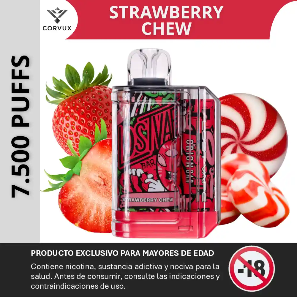 PROHIBIDA LA VENTA A MENORES DE EDAD. PRODUCTO EXCLUSIVO PARA MAYORES DE EDAD, CONTIENE NICOTINA, SUSTANCIA ADICTIVA Y NOCIVA PARA LA SALUD. ANTES DE CONSUMIR, CONSULTE LAS INDICACIONES Y CONTRAINDICACIONES DE USO. El Orion Bar 7500 es un dispositivo desechable recargable con batería integrada de 650 mAh y pre-llenado con 18 mL de e-líquido. Ofrece hasta 7 500 caladas aprox., activación automática al inhalar y flujo de aire ajustable para personalizar la sensación de cada bocanada. ✨ Perfil del sabor ✦ Notas principales: Sabor predominante a fresa dulce tipo caramelo, similar a golosina masticable. ✦ Contrastes: El dulzor de la fresa se equilibra con matices ligeros que aportan sensación de golosina afrutada sin notas invasivas. ✦ Experiencia sensorial: Perfil frutal definido con un carácter suave y dulce en cada calada, constante a lo largo de la duración del dispositivo. ✦ Ideal para: Usuarios que buscan un sabor frutal dulce y accesible con un perfil simple que acompaña bien caladas intermedias a prolongadas. 📋 Especificaciones técnicas ✦ Capacidad de e-líquido: 18 mL precargado. ✦ Inhalaciones estimadas: Hasta 7 500 puffs. ✦ Batería: 650 mAh recargable con USB-C. ✦ Concentración de nicotina: ~5 % (50 mg). ✦ Mecanismo: Activación automática al inhalar, flujo de aire ajustable. PROHIBIDA LA VENTA A MENORES DE EDAD. PRODUCTO EXCLUSIVO PARA MAYORES DE EDAD, CONTIENE NICOTINA, SUSTANCIA ADICTIVA Y NOCIVA PARA LA SALUD. ANTES DE CONSUMIR, CONSULTE LAS INDICACIONES Y CONTRAINDICACIONES DE USO.