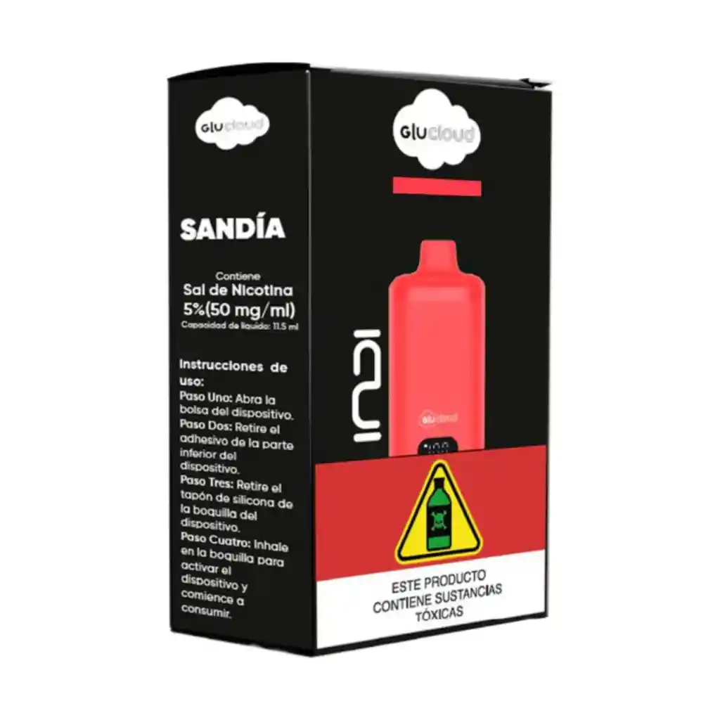 Vaporizador Glucloud Indi Sandía Eleva tu experiencia de vapeo al máximo con el poderoso sabor Sandía. INDI crea una sensación de confort y elegancia, brindando una experiencia de vapeo suave y llena de energía, ideal para quienes buscan algo sofisticado y reconfortante. ¡Un producto imprescindible para cualquier amante de los sabores de vapeo! Volumen de líquido: 11 Mililitros de E-líquido Contiene: Glicerina Vegetal: 31.3% Propilenglicol: 44.94% Sabor articificial/natural: 18.76% Nicotina: 5% Características: Dual-Mesh: Utiliza dos mallas metálicas, permite calentar el líquido de vapeo de manera más uniforme y rápida, mejorando tanto la producción de vapor como el sabor. 8.000 puffs: *Depende del tipo de consumo y de consumidor. Puerto de carga: Tipo USB-C Batería: 500 mAh. Dimensiones: 93 mm x 47,5 mm x 18,7 mm