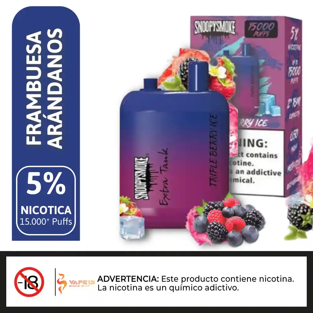 Echa un vistazo al SS15TBI Triple Berry Ice Extra Tank 2 Desechable, que ofrece 18mL x 2 de capacidad precargada, 5% de potencia de n-i-c-@-t--i-n-a, y ofrece hasta 15000 usos. Sn@opy-Sm@ke Extra Tank 2 15000 Desechable Características: – Capacidad precargada: 18mL x 2 – Capacidad de la batería: 650mAh – Max Usos: 15000 – Potencia de nicotina: 5% (50mg) – Funcionamiento: Activado por tiro – Elemento calefactor: Bobina de malla – Carga: Puerto Tipo-C