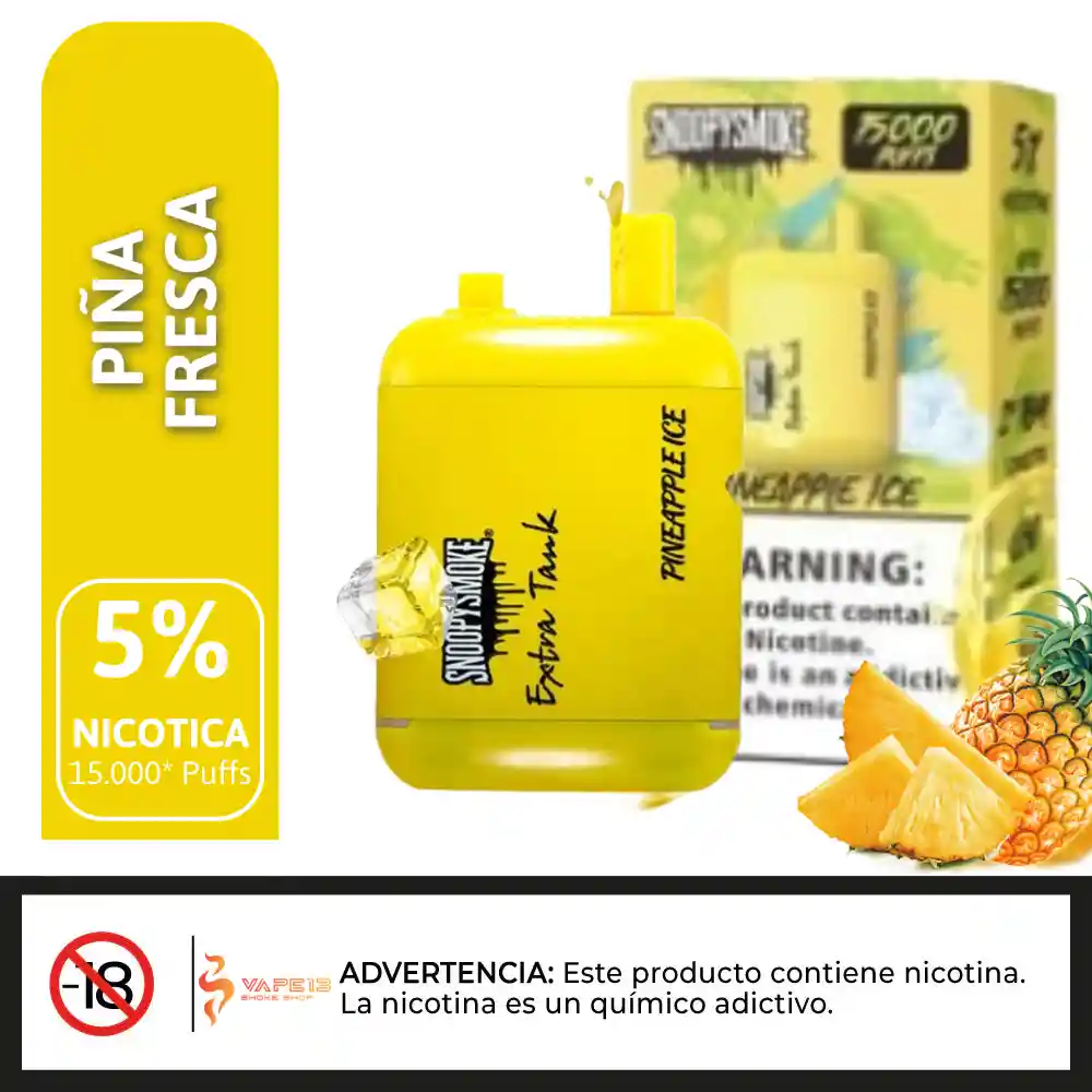 Echa un vistazo al SS15PI Pineapple Ice Extra Tank 2 Desechable, que ofrece 18mL x 2 de capacidad precargada, 5% de potencia de n-i-c-@-t--i-n-a, y ofrece hasta 15000 usos. Sn@opy-Sm@ke Extra Tank 2 15000 Desechable Características: – Capacidad precargada: 18mL x 2 – Capacidad de la batería: 650mAh – Max Usos: 15000 – Potencia de nicotina: 5% (50mg) – Funcionamiento: Activado por tiro – Elemento calefactor: Bobina de malla – Carga: Puerto Tipo-C