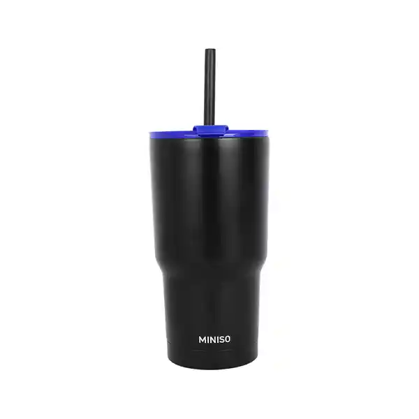 Miniso Trae Para ti Este Lindo y Exclusivo Vaso de Doble Pared 580 mL Con Pitillo Serie Solid Negro