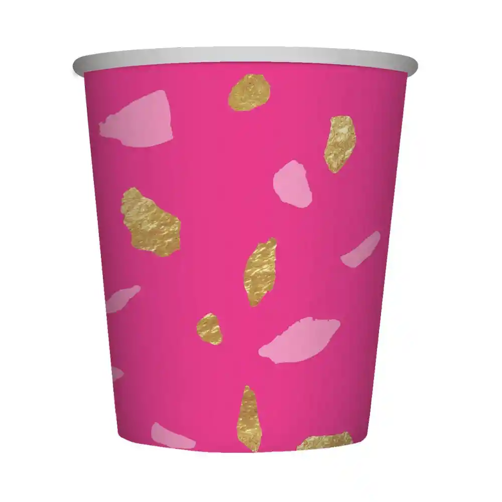 Transforma tu celebración con nuestros vasos de cartón Terrazo Fucsia, el complemento perfecto para crear momentos inolvidables. Su vibrante diseño multicolor añade alegría instantánea a cualquier fiesta de cumpleaños, mientras que su acabado terrazo moderno genera fotos espectaculares que arrasarán en redes sociales. Ideales para capturar la diversión del evento, sino que elevan la estética de tu decoración. Elige la alegría, elige el estilo, elige vasos que hagan brillar tu celebración.