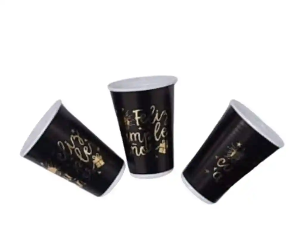 Vaso feliz cumpleaños negro-dorado x12 unds