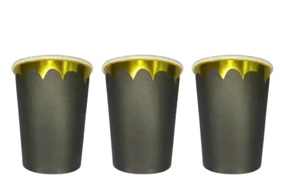 VASO NEGRO BORDE DORADO X10