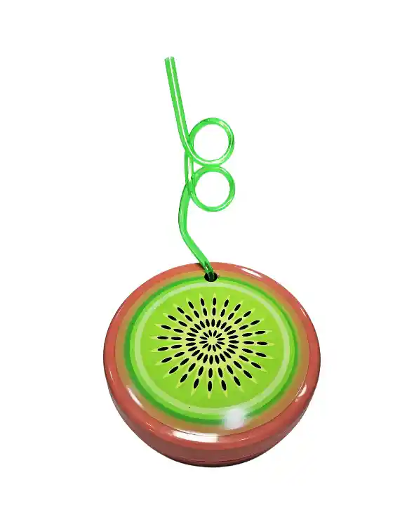 Vaso de plástico en forma de kiwi. Incluye pitillo.