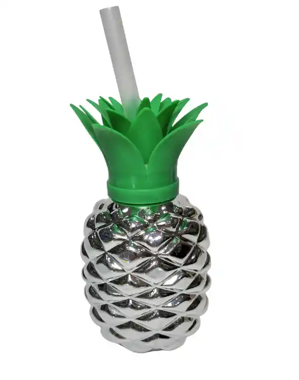 Vaso pitillo plástico en forma de piña y colores brillantes.