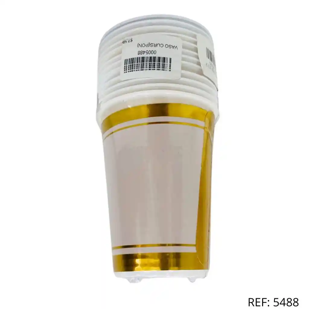 Vasos de papel desechables en color blanco con detalles metalizados. Ideales para fiestas y eventos especiales. Pregunta y elige el color disponible: dorado o plateado