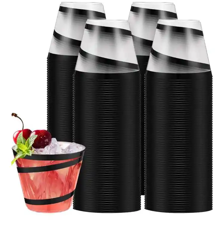 VASO CRISTAL 9 ONZAS DESECHABLE. VASO DE LUJO PARA TUS BEBIDAS, COCTELES. ELABORADO EN PLÁSTICO DURO, AÑADE UN TOQUE DE ELEGANCIA A TU MESA O FIESTA DE CUALQUIER TEMATICA,