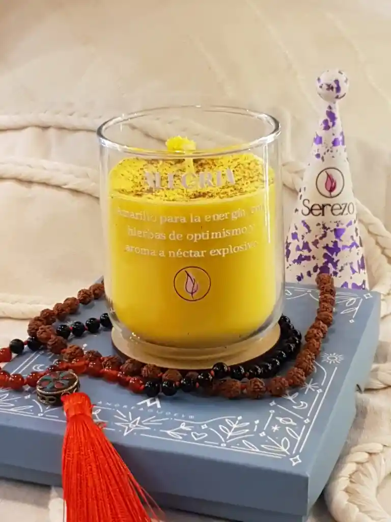 Vela artesanal de Alegría creada para elevar el ánimo, atraer energía positiva y llenar tu espacio de bienestar y armonía. Su aroma vibrante y envolvente ayuda a renovar el ambiente, aportar optimismo y acompañar momentos de gratitud, celebración o nuevos comienzos. Ideal para: ✨ Elevar la energía del hogar ✨ Atraer vibras positivas ✨ Ritual de intención y manifestación ✨ Regalo con significado ✨ Decoración espiritual Elaborada a mano con intención, en vaso de vidrio listo para encender y transformar tu espacio. Enciéndela cuando quieras activar felicidad, optimismo y luz interior.