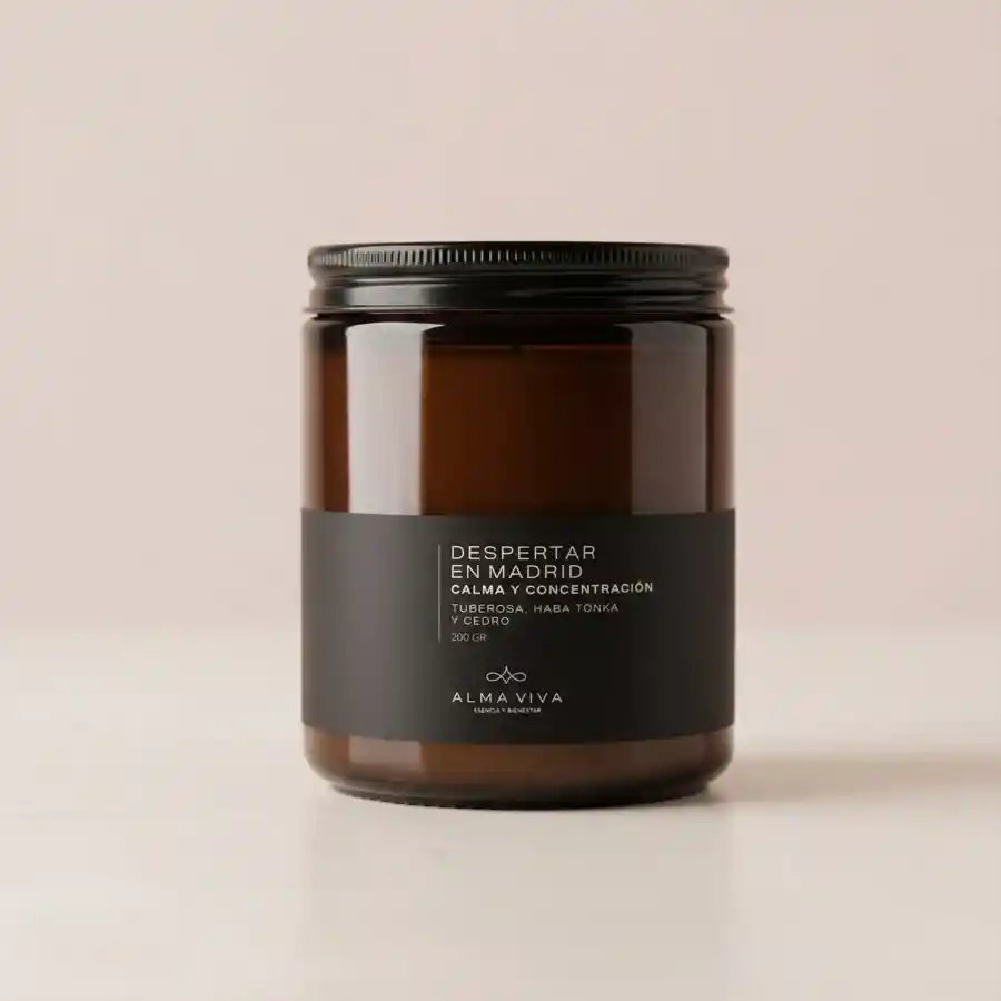Vela a base de cera de soya y cera convencional , Fragancias: Tube Rosa, Haba Tonka y Cedro