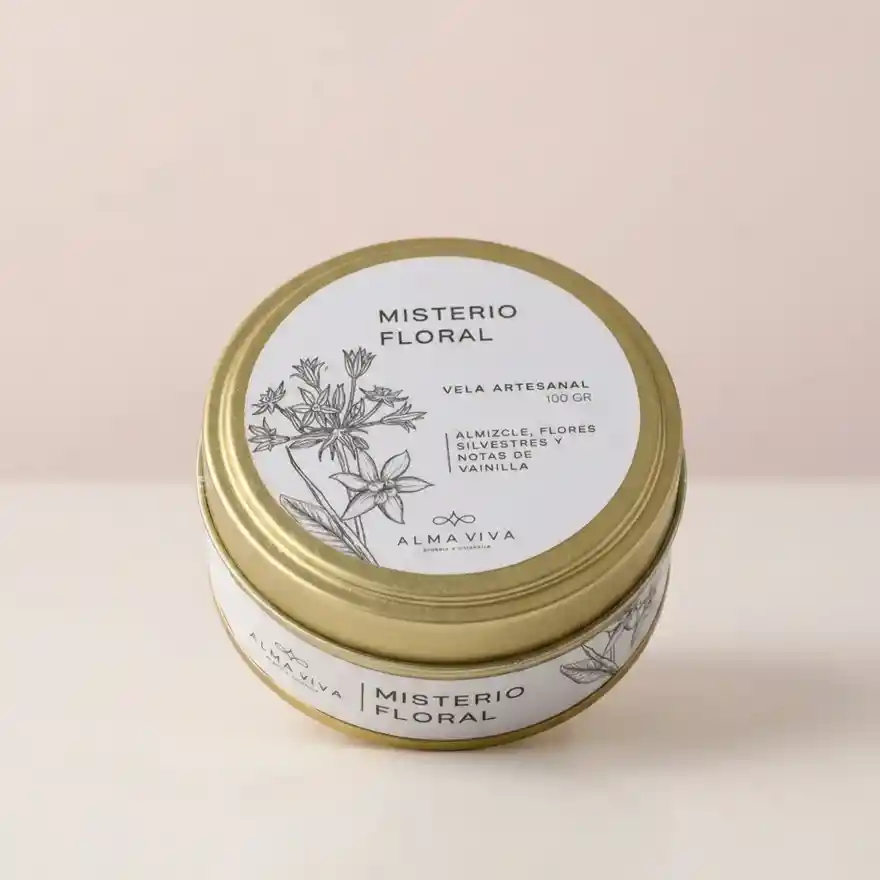 Vela a base de cera de soya y cera convencional , Fragancias: Almizcle, Flores Silvestres y Notas de Vainilal