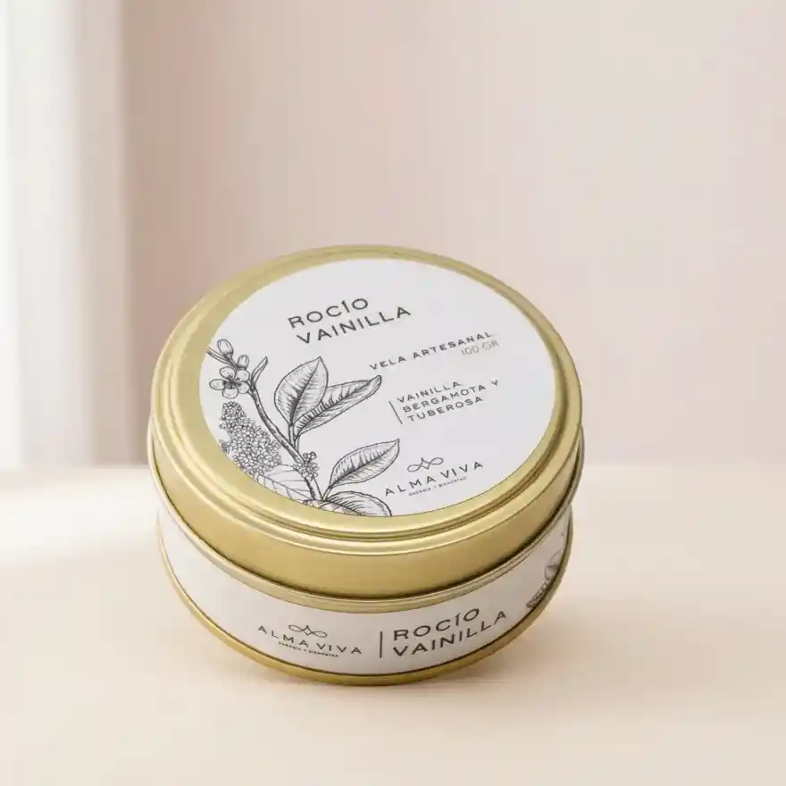 Vela a base de cera de soya y cera convencional , Fragancias: Vainilla , Bergamota y Tuberosa