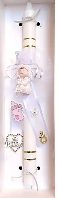 vela bautismal, decorada. rosada