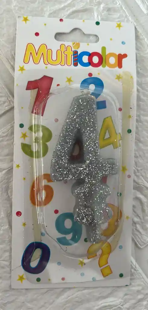 VELA DE CUMPLEAÑOS NUMERO 4 PLATEADA COD.3080