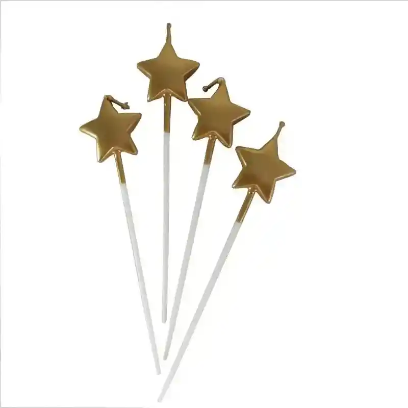 Vela Estrellas X 4 Unidades Dorado. Ideal para decorar tartas de cumpleaños y tartas de fiestas.