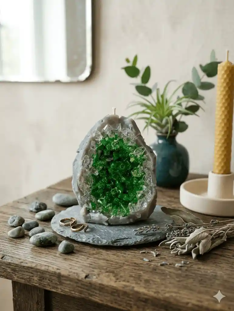 Vela tipo geoda de jade. Energiza y aromatiza tu hogar con estas piezas artesanales hechas a mano