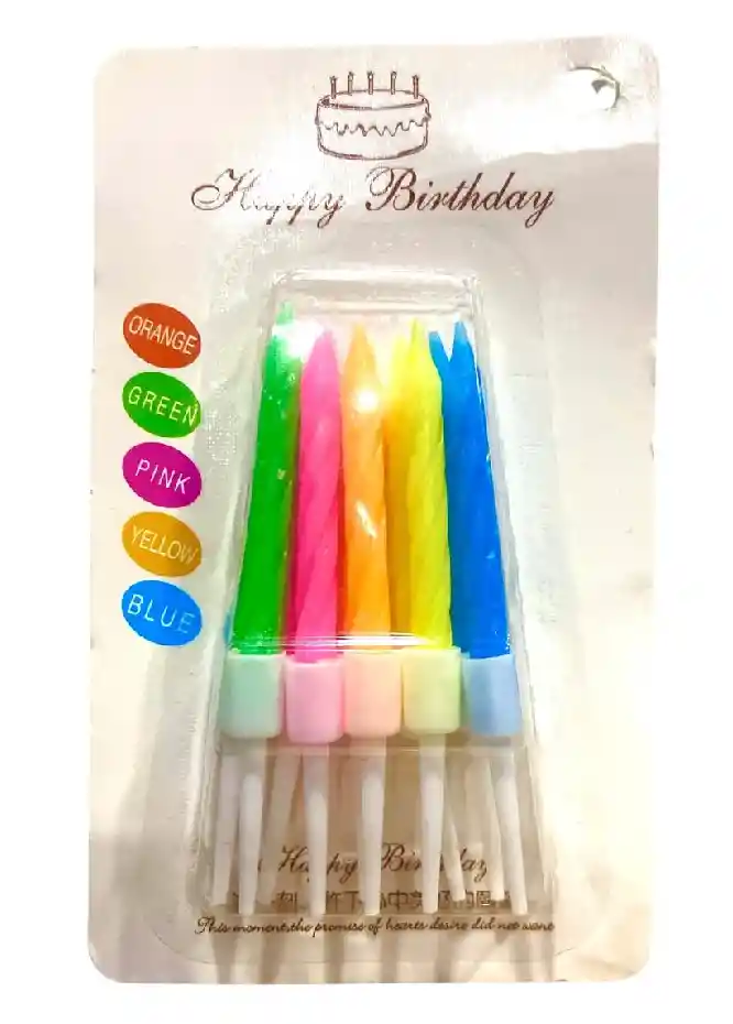 Vela Metalizada Neon 7 Cm X 10 Unidades