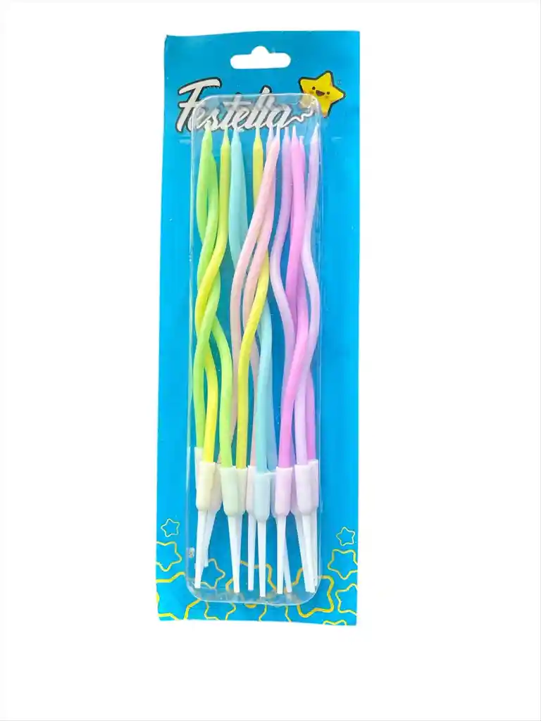 VELA PARA TORTA DE CUMPLEAÑOS POR 12 UNIDADES DISEÑO ESPIRAL LARGA DE COLORES PARA TORTAS