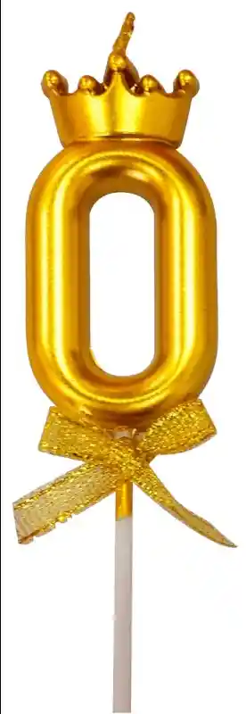 VELA PREMIUM METALIZADA CUMPLEAÑOS NUMERO 0 CON CORONA COLOR DORADO