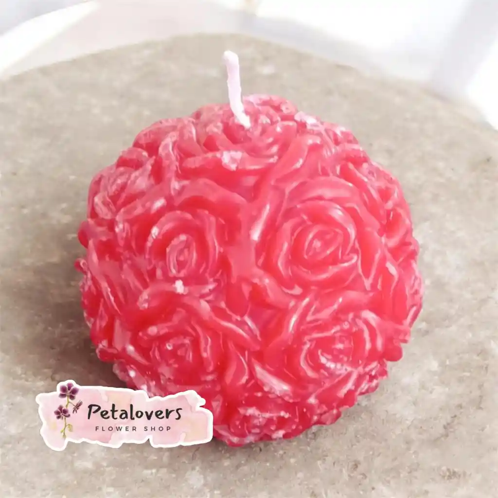 Vela Redonda Floral Roja🌸🕯️
