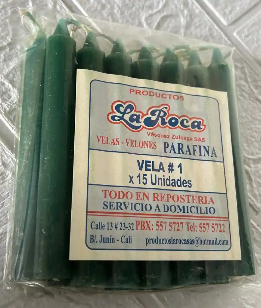 VELAS DE NAVIDAD LA ROCA PAQUETE X15 UNIDADES VERDE OSCURA COD.2714